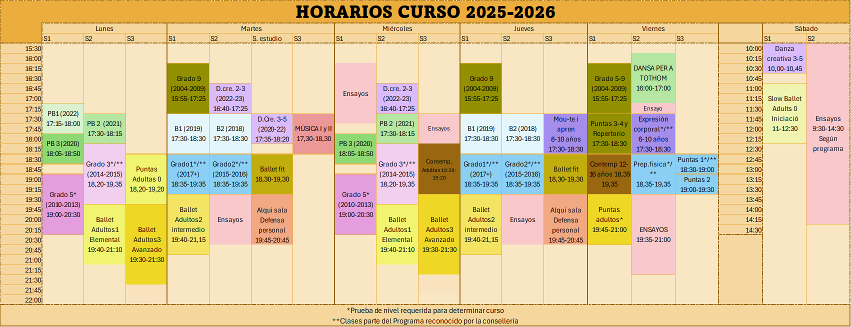 *For intermediate sections, please contact the secretary at info@artdansa.es