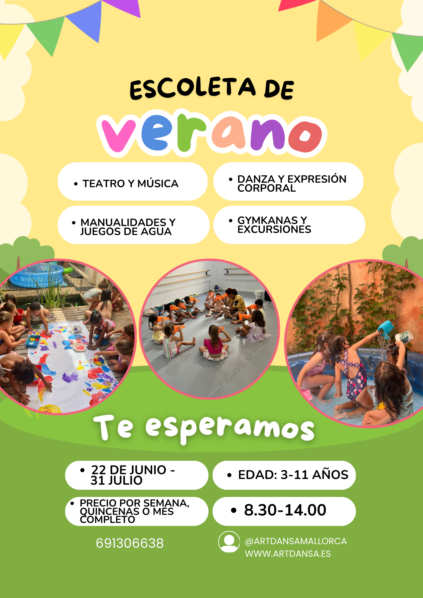 🩰 Dance · 🎨 Arts & crafts · 🥁 Music · 🤹🏽♀️ Creative dance · 🎭 Theatre · 🎲 Water games · 🌿 Excursions