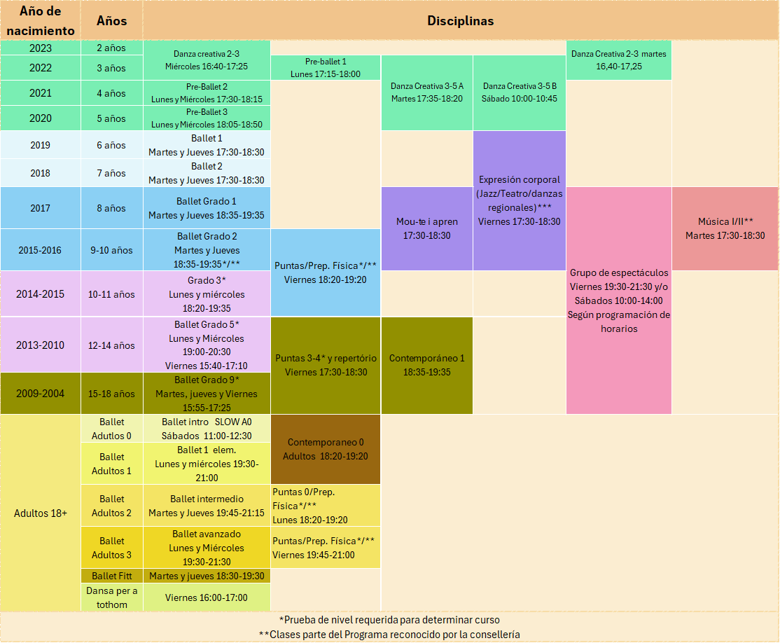 *Para tramos intermedios consultar en secretaría info@artdansa.es